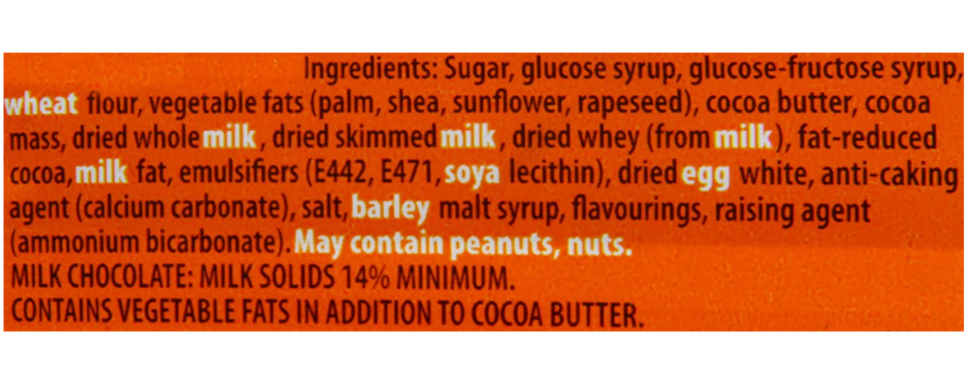 Allergen information Contains: Milk. Wheat. Gluten. Cereals containing Gluten. Eggs. Peanuts. Tree Nuts