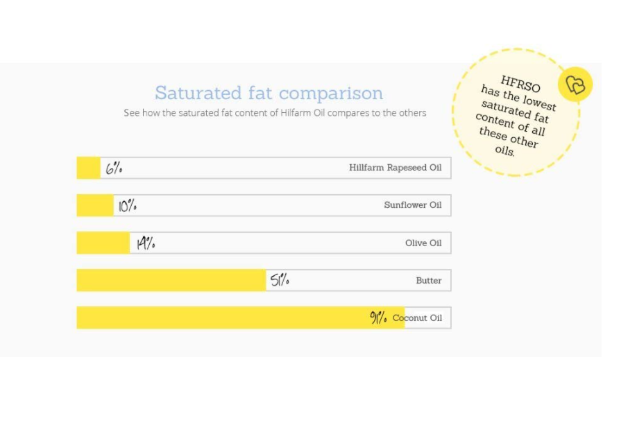 • Rapeseed cooking oil has 57% less saturated fat than olive oil