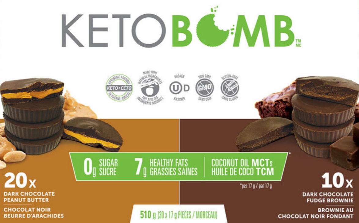 Introducing carefree indulgence. the No Sugar Co. Keto Bomb is the first of its kind! Rich in flavour. healthy fats. and coconut oil MCT’s. while keeping carbs as low as possible. With 0g of sugar. the No Sugar Co. Keto Bomb will thrill your taste buds and provide the energy you need to power you through your day. TheNo Sugar Co. Keto Bomb makes an excellent addition to Keto and Low Carb – High Fat meal plans. The Keto Bombs are ketogenic friendly. made with natural ingredients. kosher. non-GMO and gluten free.