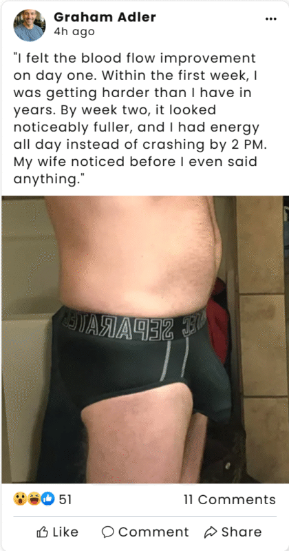 Most men notice increased morning erections and subtle energy boost within 5 days to 1 weeks. For full performance benefits — harder erections, lasting stamina, restored libido — consistent daily use for 20-30 days delivers optimal results. This isn’t a quick fix. It’s a restoration of your body’s natural function.