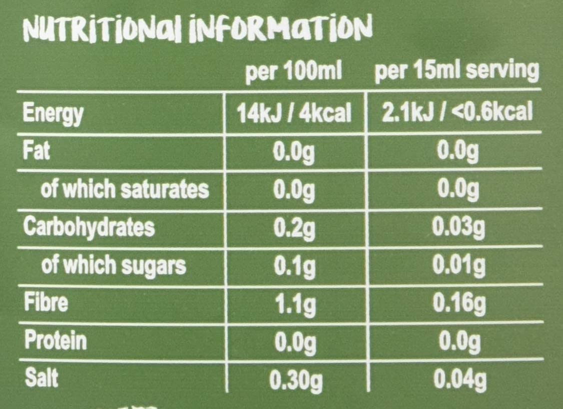Water. Thickeners (Sodium carboxy methyl cellulose. Xanthan gum). Flavouring. Acid (Lactic Acid). Sweetener (Sucralose). Preservatives (Potassium sorbate. Sodium benzoate).