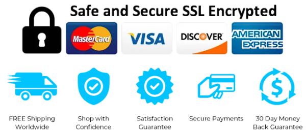 The Checkout Process is Guaranteed to be 100% Safe and Secure with Visa, Mastercard, AMex, Discover, Apple Pay or PayPal.