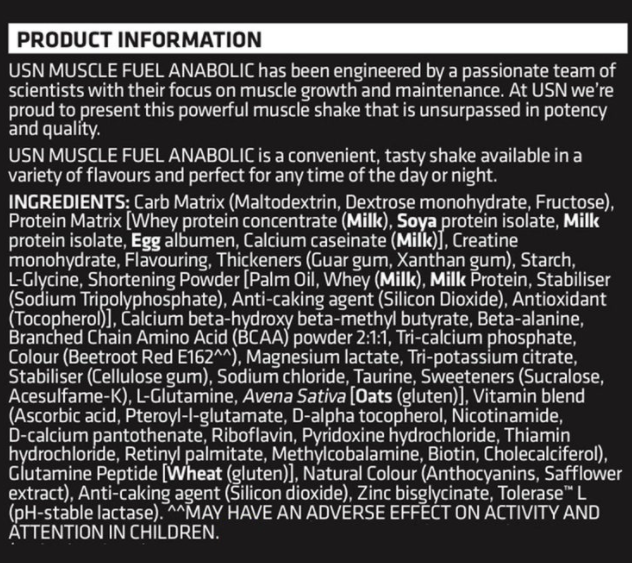 USN’s Muscle Fuel Strawberry Anabolic Powder is a all-in-one gain shake powder. providing 53g protein and 82g carbohydrates to support muscle recovery. growth and performance. This USN gainer provides a high-quality vitamin. mineral. carbohydrate and protein matrix. to support your training goals.If you are what you eat then its imperative that we all take in good levels of protein as it plays a big part in the bodies structure and performance. To ensure your muscles repair and grow to support your active lifestyle. your body requires a healthy amount of protein. USNensure that the premium formulations choose whey proteins with only the best quality proteins. amino acids and other proven ingredients. delivering a supplement that is optimised for maximum muscle development.