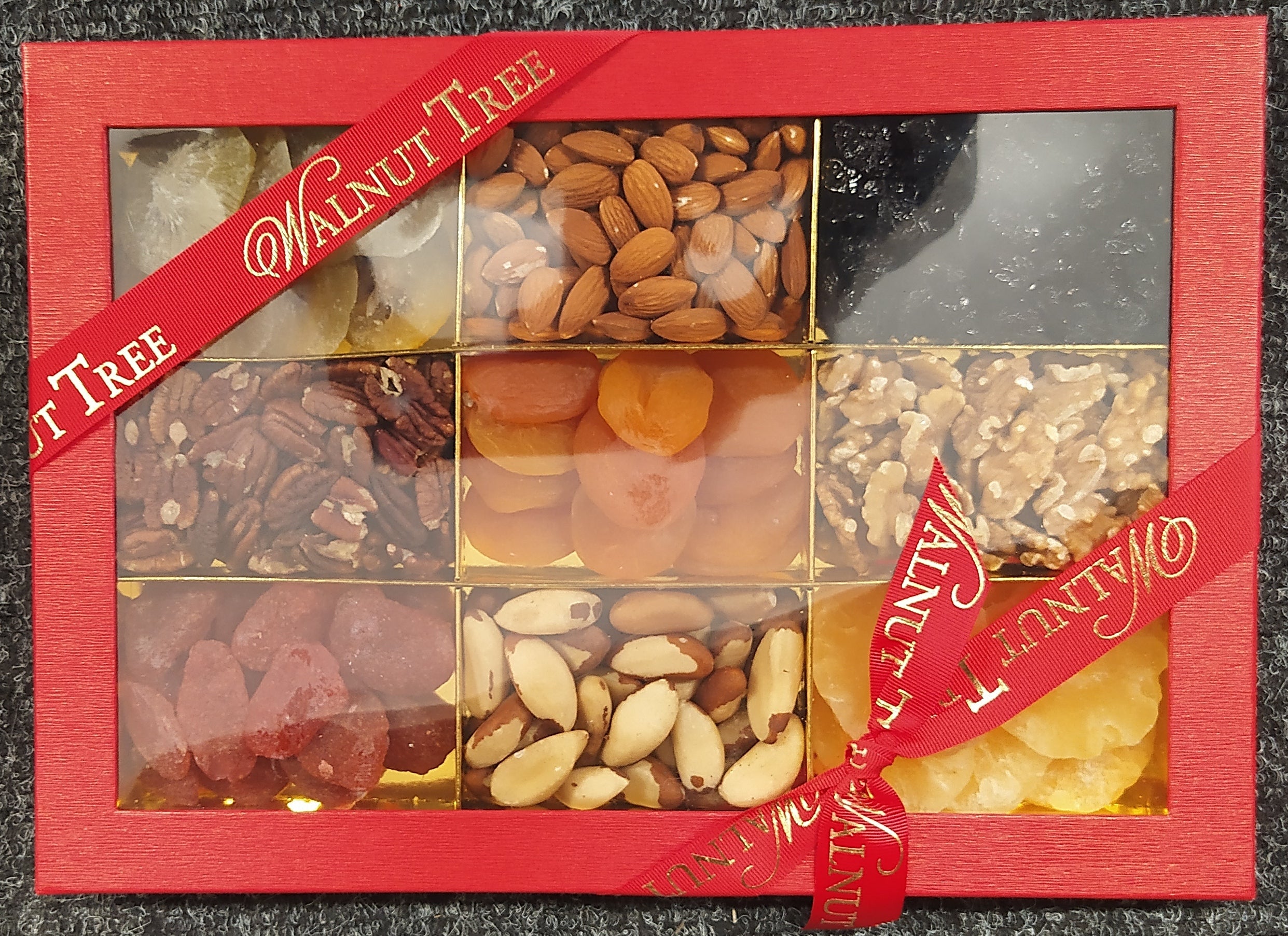 Walnut Tree Dried Fruit Platter is filled withquality apricots. which nestle comfortably next to sweet pineapple rings. tangy cranberries and juicy plums.Wrapped in minimal packaging to help with global sustainability. you receive a perfect combination of delicious healthy snacking and gifting.